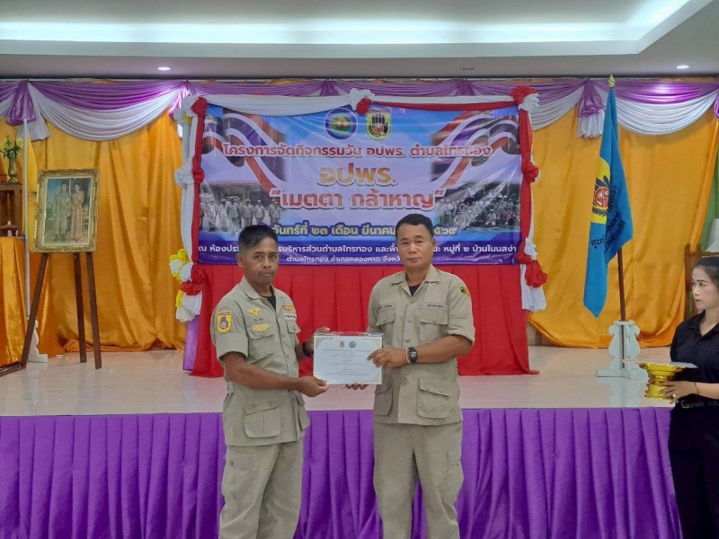 วันที่ 23 มีนาคม 2569 เวลา 09.00 น. นายศักดิ์ชัย แย้มโกสุม นายกองค์การบริหารส่วนตำบลไทรทอง ในฐานะ ผู้อำนวยการศูนย์อาสาสมัครป้องกันภัยฝ่ายพลเรือน องค์การบริหารส่วนตำบลไทรทอง ได้เป็นประธานในพิธีเปิดโครงการจัดกิจกรรม อปพร. ตำบลไทรทอง ประจำปีงบประมาณ พ.ศ. 2569 โดย นายอนุวัฒน์ พันธุเวช ปลัดองค์การบริหารส่วนตำบลไทรทอง กล่าวรายงานวัตถุประสงค์
